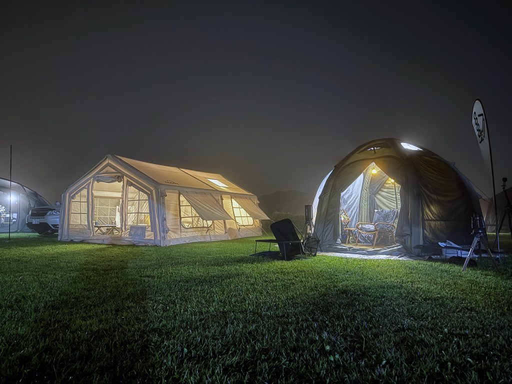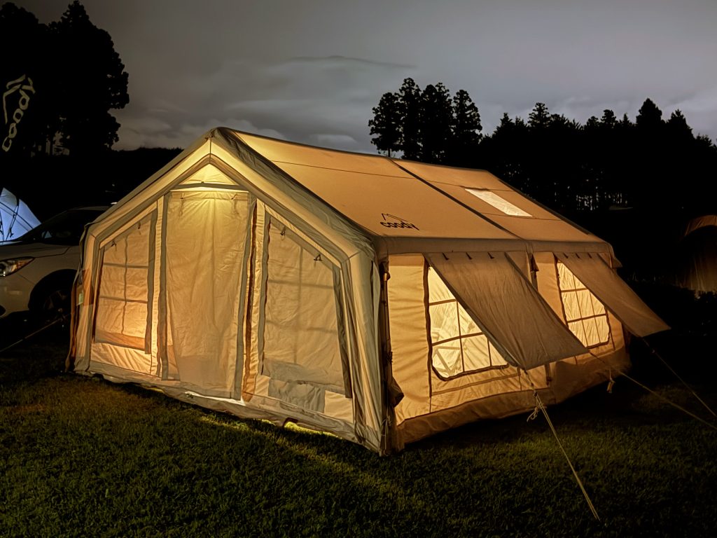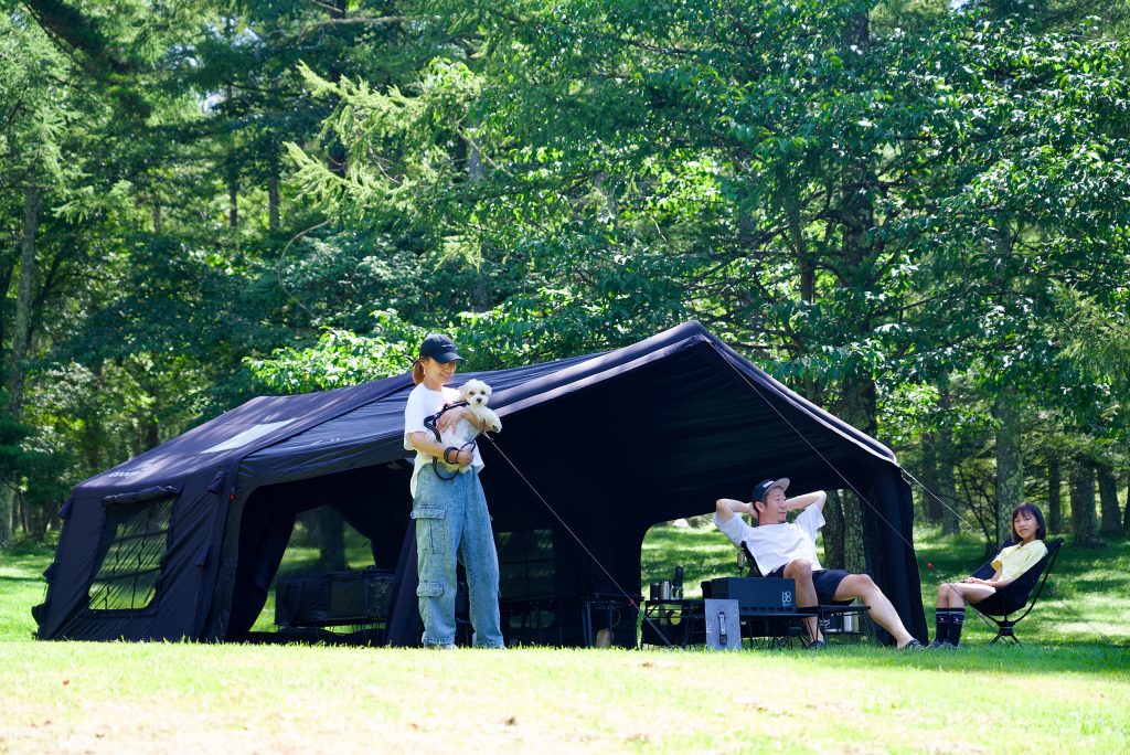 電動ポンプで空気を入れるだけで簡単に設営でき、初心者でも迷わず立ち上げ可能。