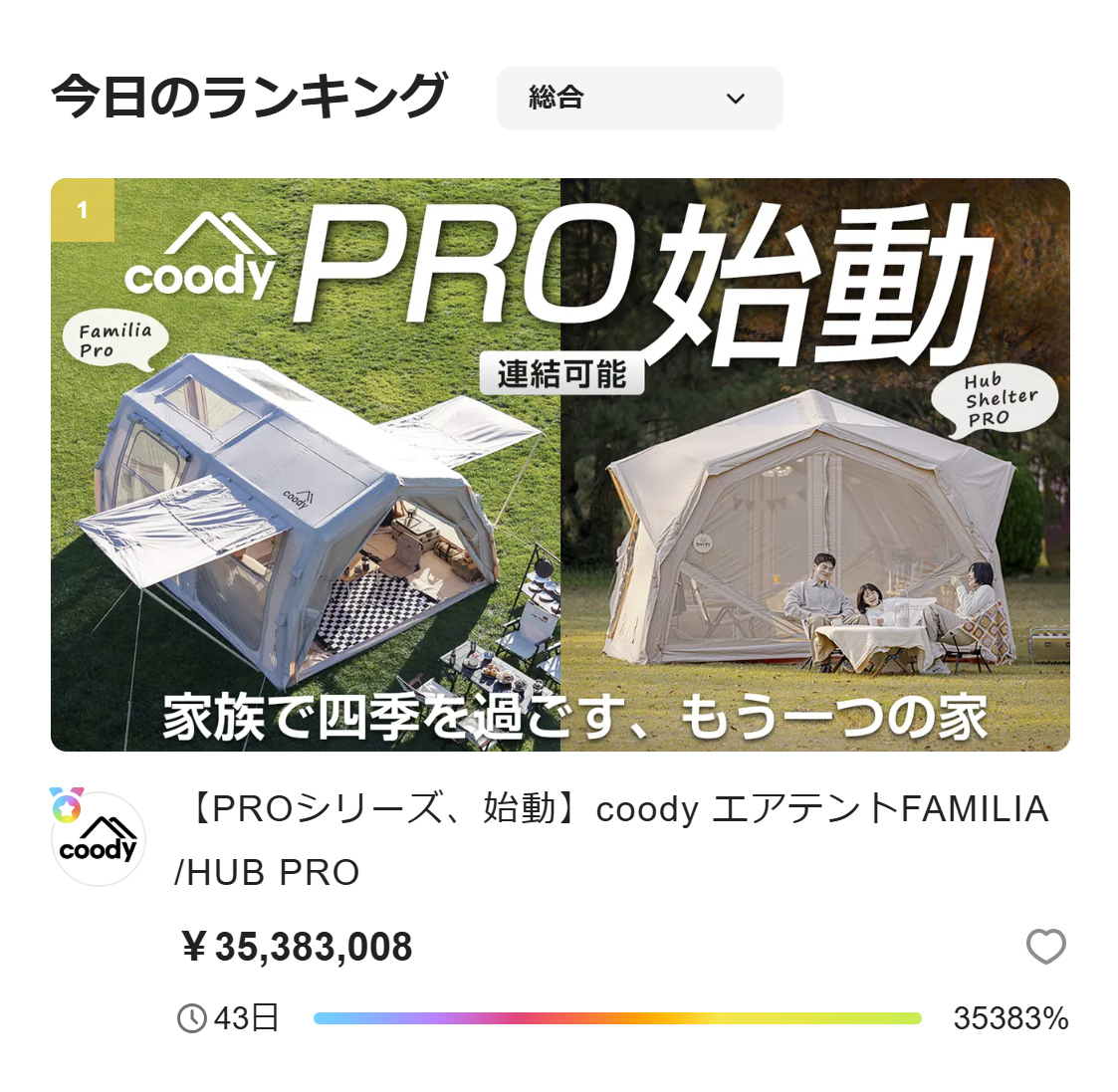 公開直後から多くの方にご支援・応援をいただき、開始初日に各種ランキングにて