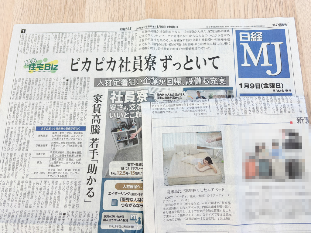 【新聞掲載】日経MJ (2026/1/9発行)にcoodyAIRBLOCKコレオ(COREO)が掲載されました。