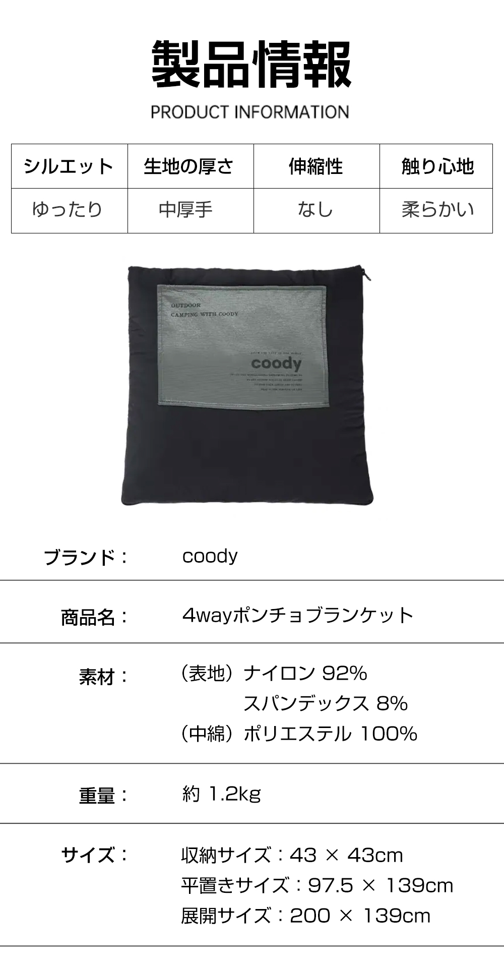 coody 4wayポンチョブランケットキャンプ愛好家の“理想のポンチョ”