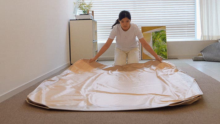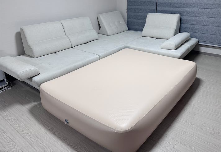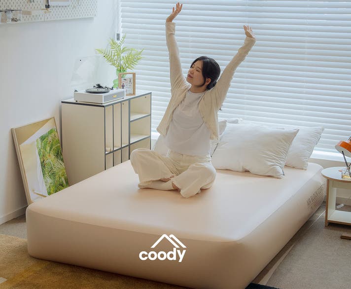 coody Air Block COREOは、折りたたみも設置もスムーズで、昼はリビングに、夜はベッドとして活躍します。