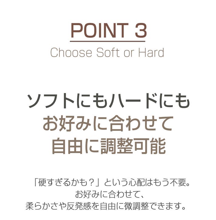 使用環境や体型に応じて、柔らかさや反発感を自在に調整し、お好みの寝心地を実現します。