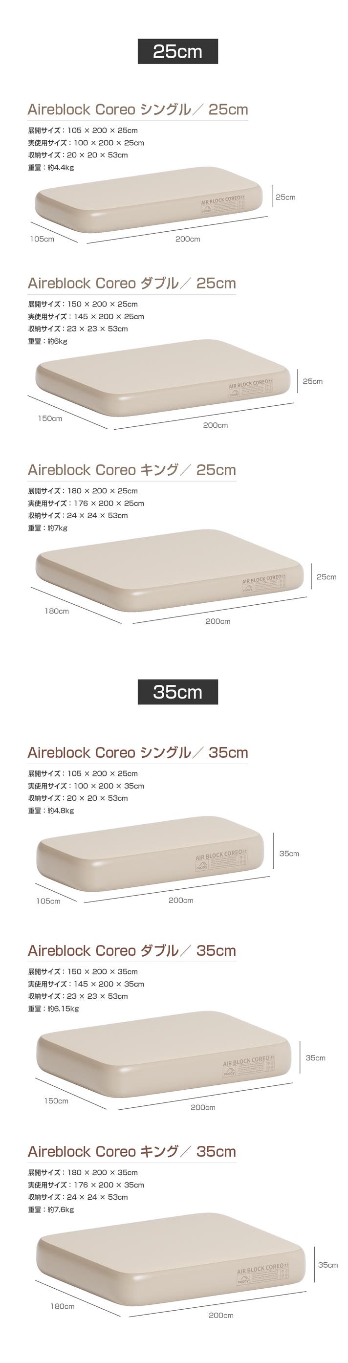 25cmと35cmの2タイプから、あなたのキャンプスタイルにぴったりの厚みをお選びいただけます。
