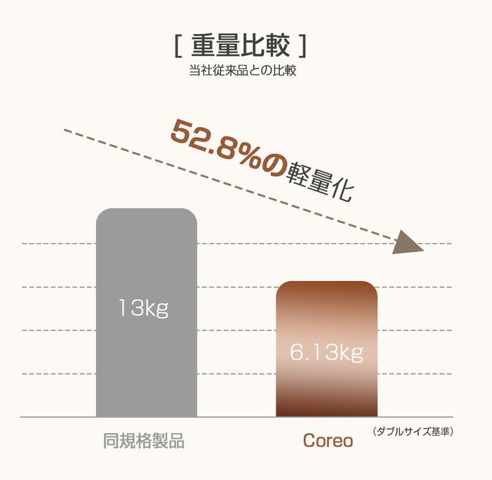 coody独自の繊維配置設計により、横になった瞬間から包み込まれるような安定感を実感。まるでホテルのベッドのように、快適で安心な眠りを叶えます。