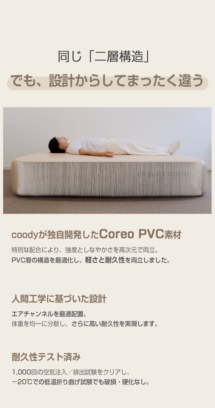 coody独自開発の素材による「二層構造エアチャンバー」を採用。