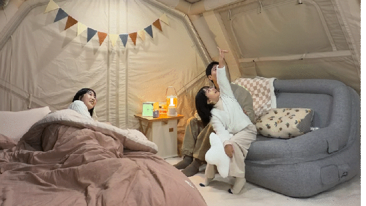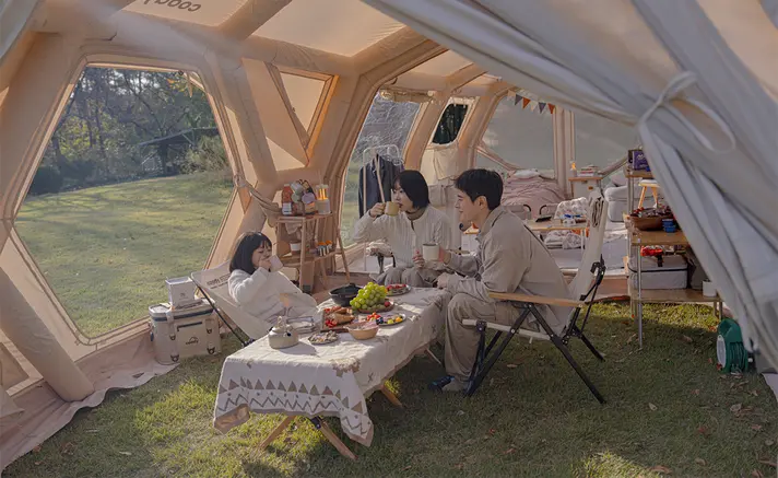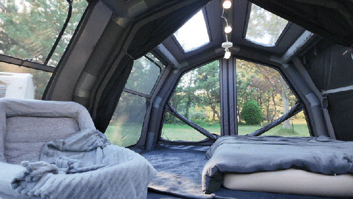 展開した瞬間、次元の違う快適さを体感。エアテントが創り出すラグジュアリー空間は、完璧な進化を遂げました。