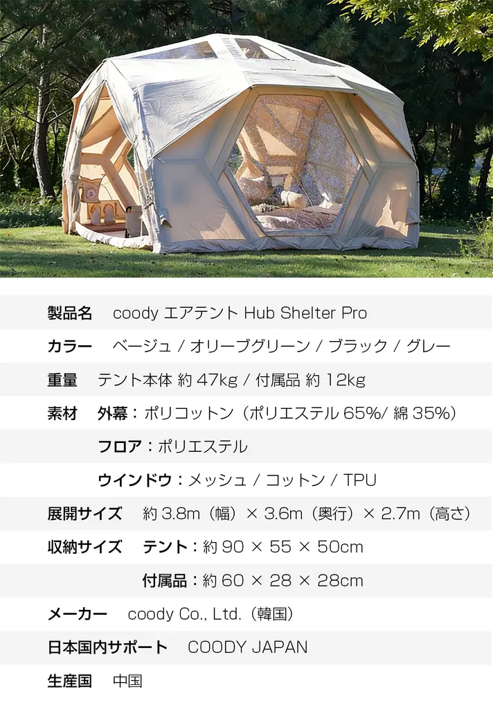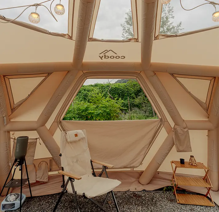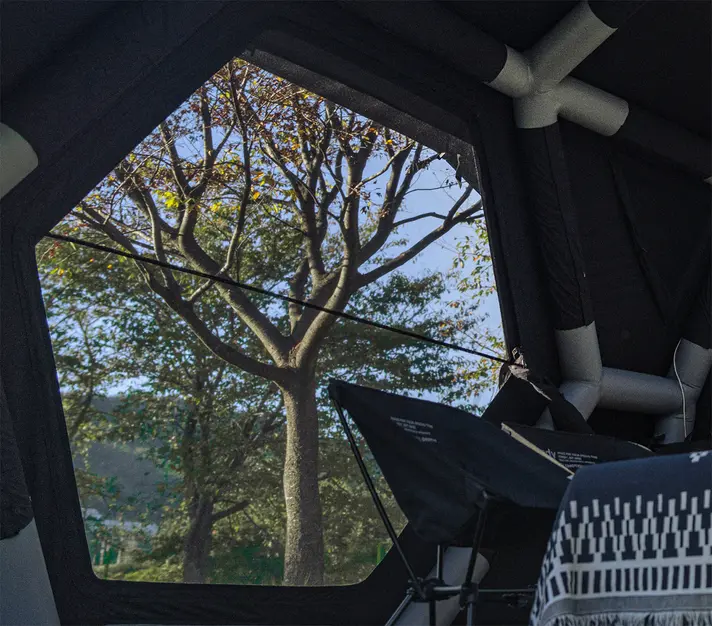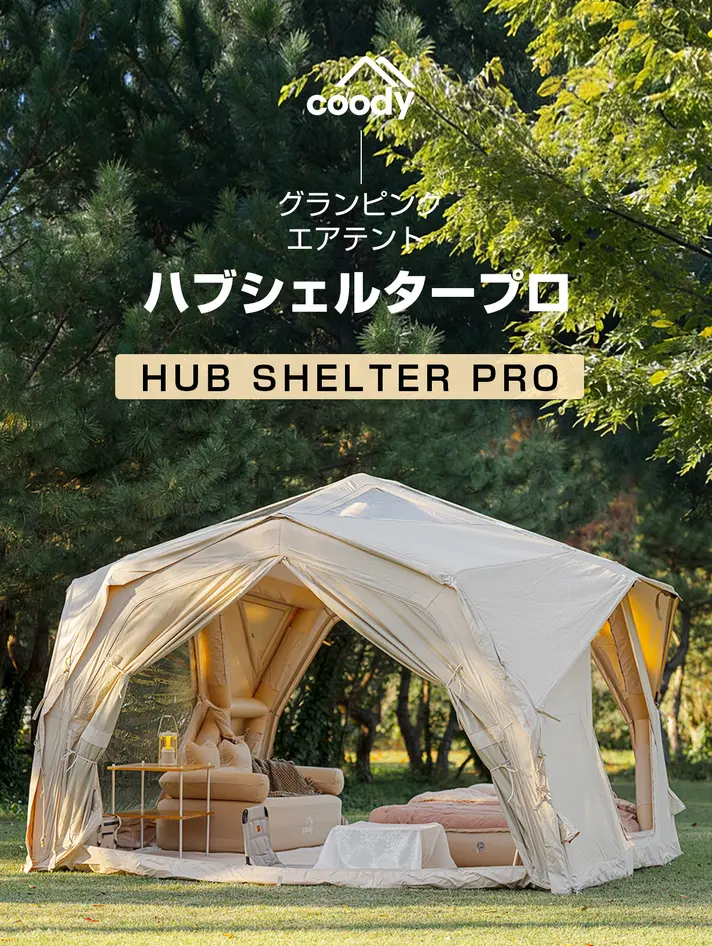 Hub Shelter Proは、ただ広いだけではありません。最適化された内部構造により、実用性と開放感を両立。しかも、この“作品級空間”が、空気を入れるだけで完成します。