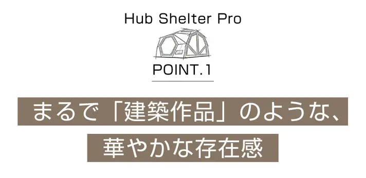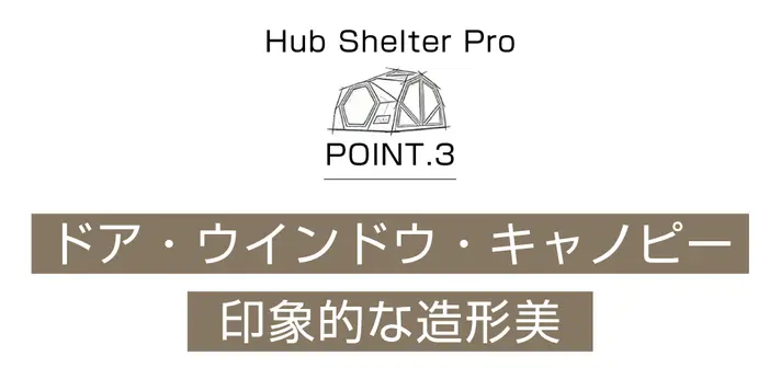 六角ウインドウとキャノピーが組み合わさることで、Hub Shelter Proならではの印象的な外観を生み出します。