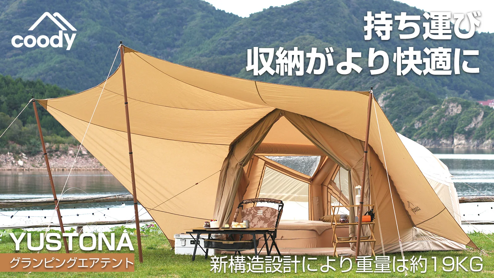 coody エアテントYUSTONAは、直径15cmの極太エアフレームを採用。
