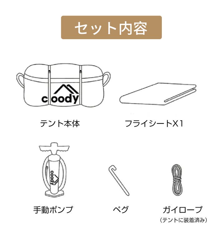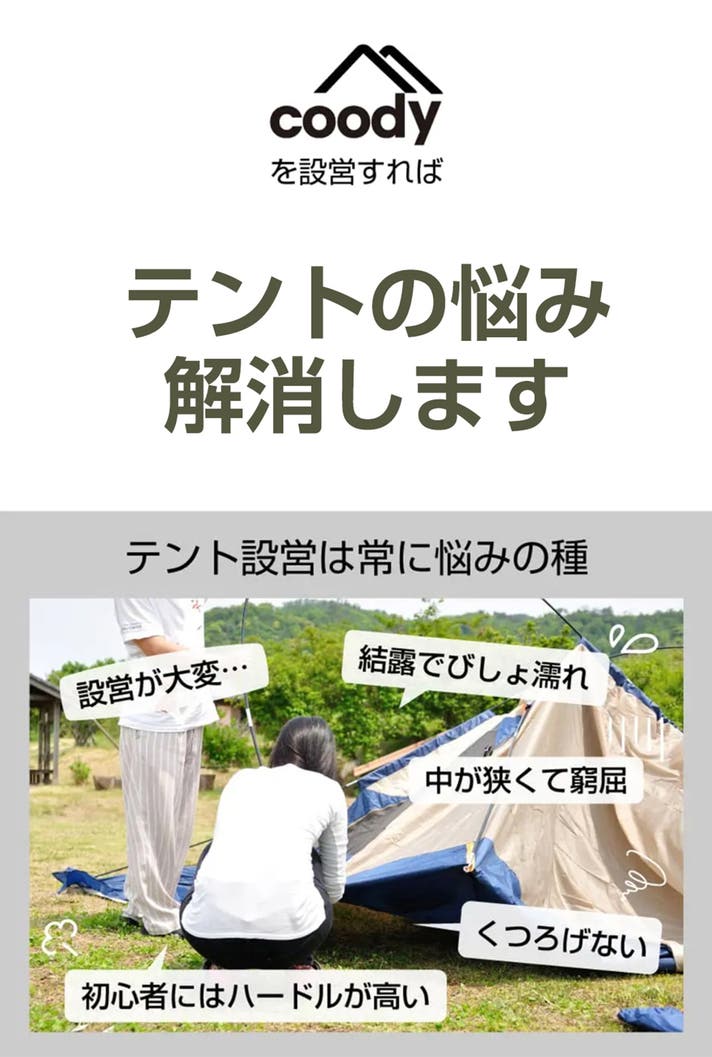 女性キャンパーやソロキャンプでも扱いやすく、少ない負担で、coodyならではの快適空間を体験できるおすすめモデルです。