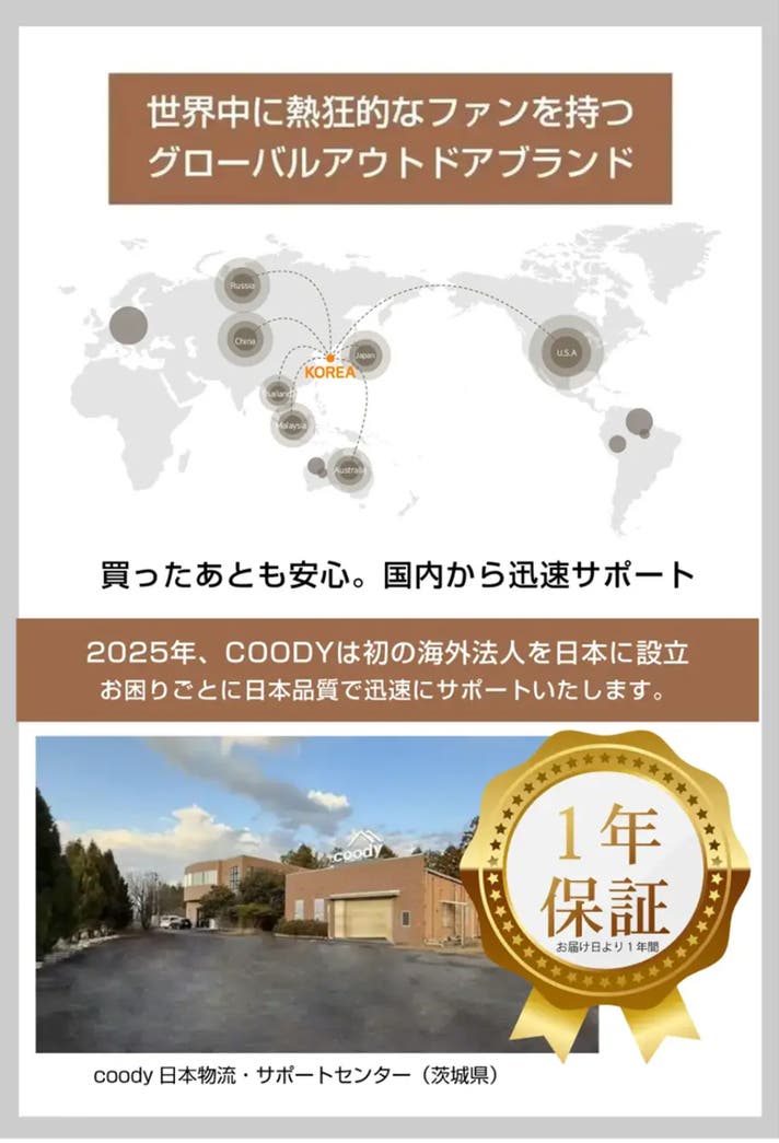 日本のお客様に安心してご利用いただくため、日本法人「合同会社COODY」を設立し、2025年3月より本格的に活動を開始しました。日本国内でのカスタマーサポート、及び配送や修理を含めたアフターサポートを提供いたします。今後は日本お客様の声を反映した商品開発を含めより快適に、安心してお使いいただける環境を整えてまいります。