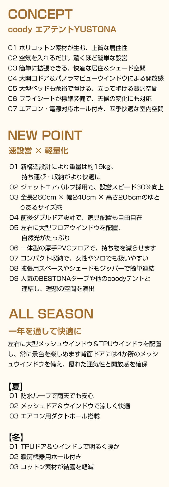 新構造設計のcoody エアテントYUSTONAには、coody専用のジェットエアバルブを採用。