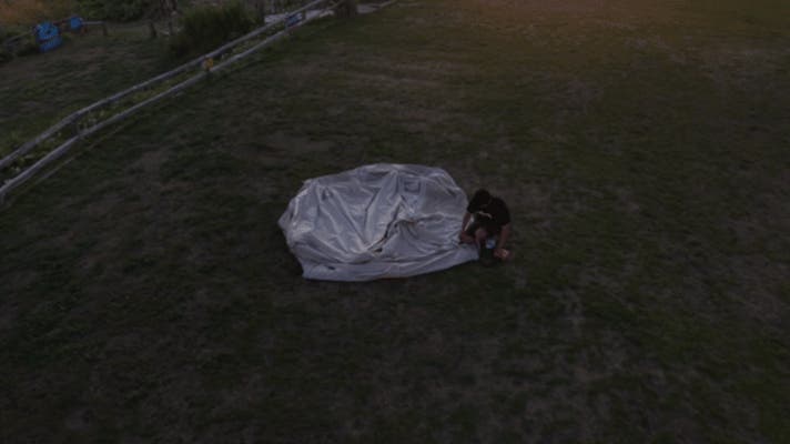 設営はとても簡単。広げて、空気を入れるだけ。付属の手動ポンプを使えば、約10分で設営が完了します。