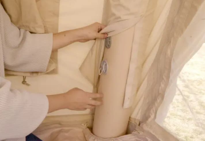 前後のドアはジッパーで全開でき、カーテンのように巻き上げてすっきり収納できます。