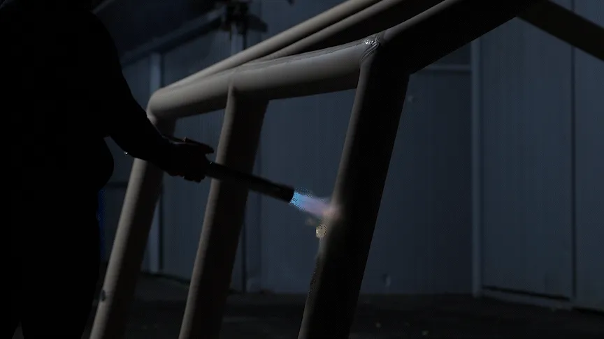エアフレームはPVC素材製で、燃えにくい難燃仕様。万一の際にも延焼しにくく、事故のリスク軽減に配慮しています。