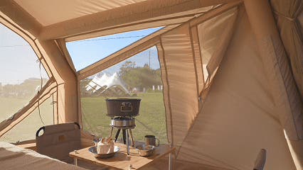 coodyは“アウトドアで最高の存在”を目指して誕生したグランピング エアテントブランド。空気を入れるだけで完成、家族や仲間とのキャンプを、かけがえのない特別な思い出にします。誰でも広げて空気を入れるだけでセルフグランピングが実現します。
