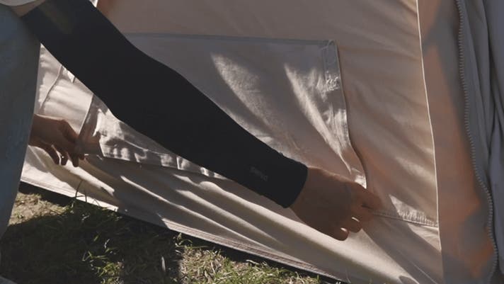 キャンプで悩みのタネになりやすい「結露」にも配慮。coody エアテントYUSTONAの生地に含まれる綿繊維が水分を吸収し、繊維の隙間から湿気を逃がすことで、内部の湿度を調整します。